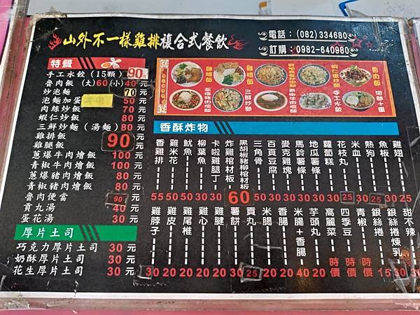 雖然他們店名叫不一樣雞排,但他們也是一家複合式餐飲店,除了炸物還有販售簡餐,所以上門光顧的客人除了吃點心,還能吃正餐。