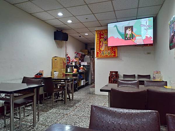 想說都有內用的座位了,那我們就在店內享用完再走,店內的裝潢也非常簡單,牆壁上還有不少觀光客的簽名,眼前還有電視可以觀看。